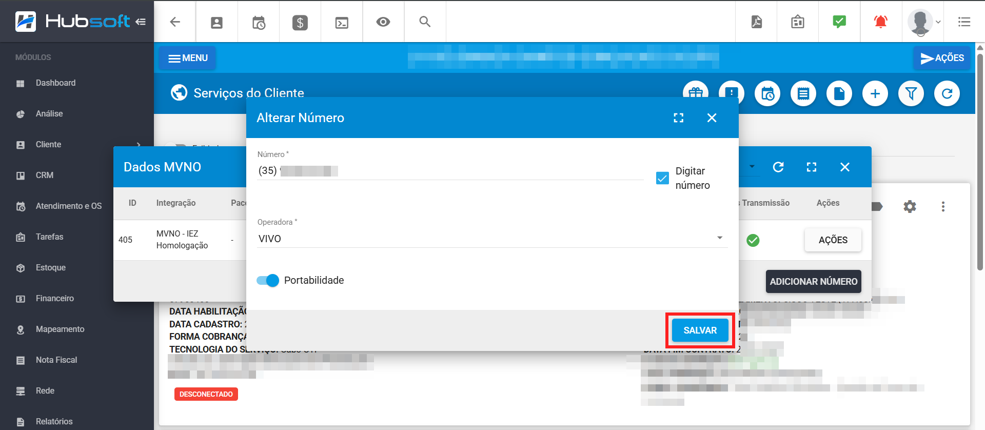 Informe o novo número e indique se ele é portado. Em caso de números portados, será necessário selecionar a operadora de origem. Em seguida, clique em Salvar.